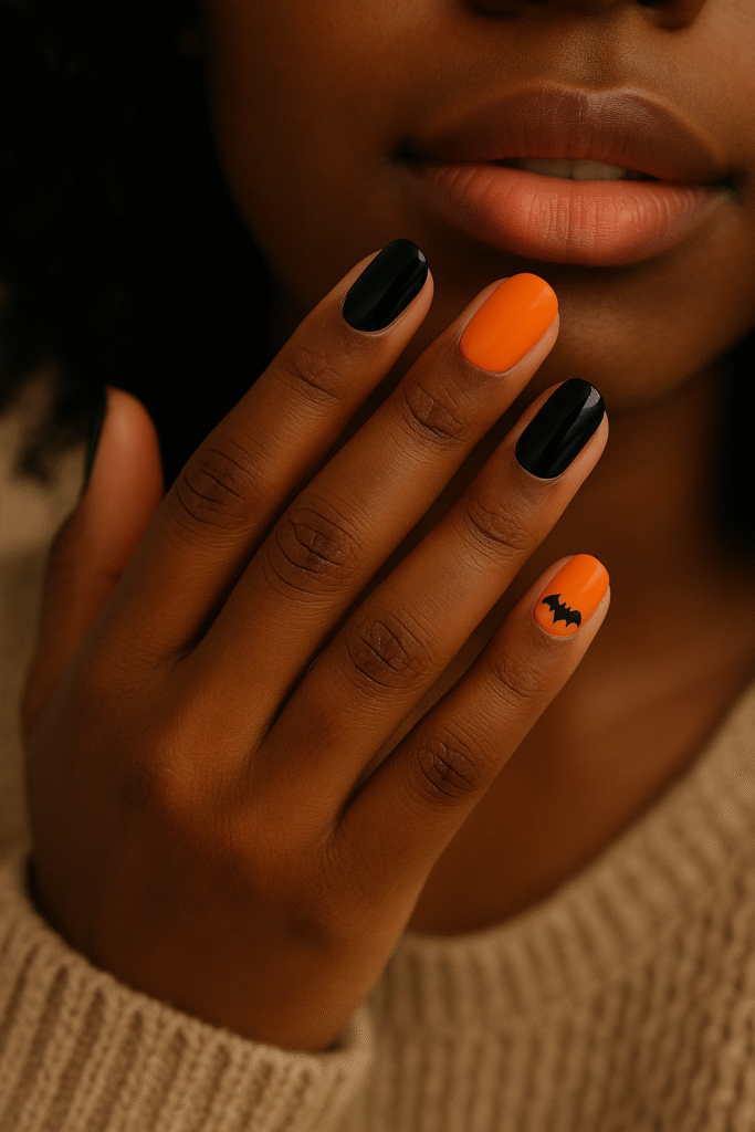 🦇 Black & Orange Halloween Nails