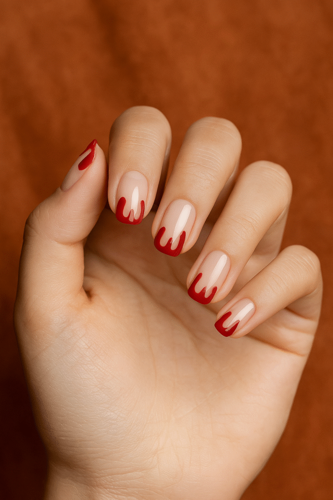 • Bloody Drip Nails 💉: red polish dripping from nude.